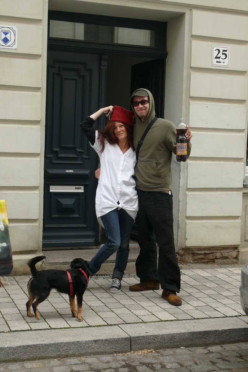 Wir verwandelten die Strasse spontan in ein grosses Cafe, ohne viel Aufwand wurden Tische, Bänke, Stühle auf die Strasse geräumt und die Besucher nahmen es gern an. Sonnenschein den ganzen Tag……